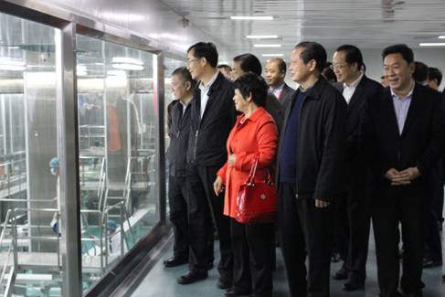 在英歌山分公司,吳紫驪局長參觀了“佳隆牌”雞精、雞粉的全自動化生產無菌車間,了解車間的自動化生產設備及工藝生產過程。通過中央控制室的監控畫面,吳紫驪局長饒有興趣地觀察生產環節的實時情況,并對我司的現代化、高水平的生產模式做高度評價。