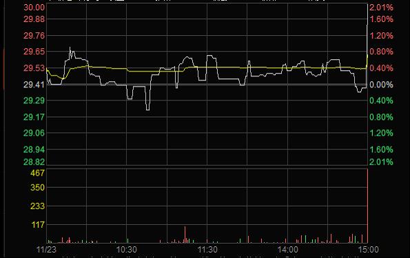 2011年11月23日臨近收盤期間(14:56:24至14:59:28),任某某為了在短期內(nèi)拉升股價(jià),大量申報(bào)買入“X”4筆共計(jì)63,000股,占尾市階段市場(chǎng)申買量的比例高達(dá)75.54%;委托價(jià)格由29.60元升至32.00元,每筆均高于當(dāng)時(shí)市場(chǎng)上的買1檔價(jià)格,三分鐘內(nèi)將股價(jià)由29.35元拉升至30元收盤,拉升幅度達(dá)2.21%。(見(jiàn)下圖)